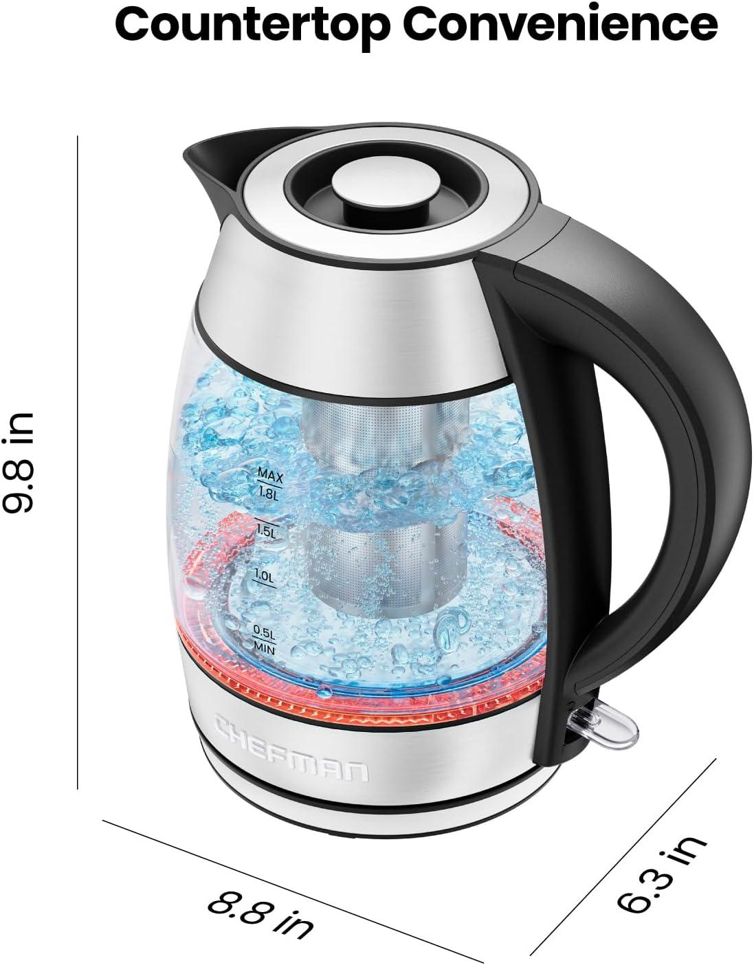 CHEFMAN Lightning High-Powered Electric Kettle, 1.8L 1750W, Rapid Boil 2 Cups in 2 Minutes, BPA Free Cordless Tea Kettle with Digital Temperature Control and 1-Hour Keep Hot – Stainless Steel(Stainless – Temp. Control)